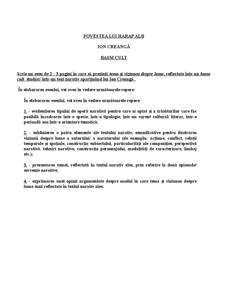 I Creangă Povestea Lui Harap Alb Temă Si Viziune R