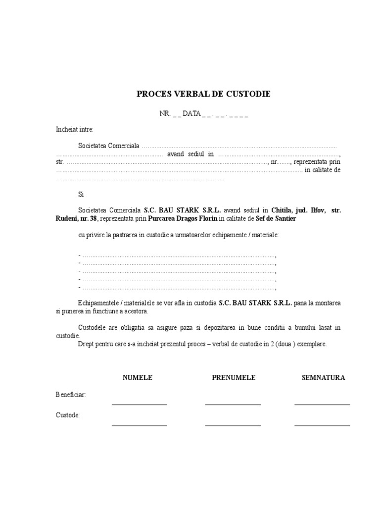 Proces Verbal De Punere In Functiune Imprimanta