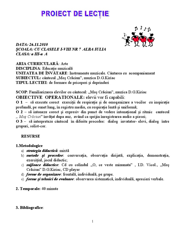 Model De Proiect De Lectie
