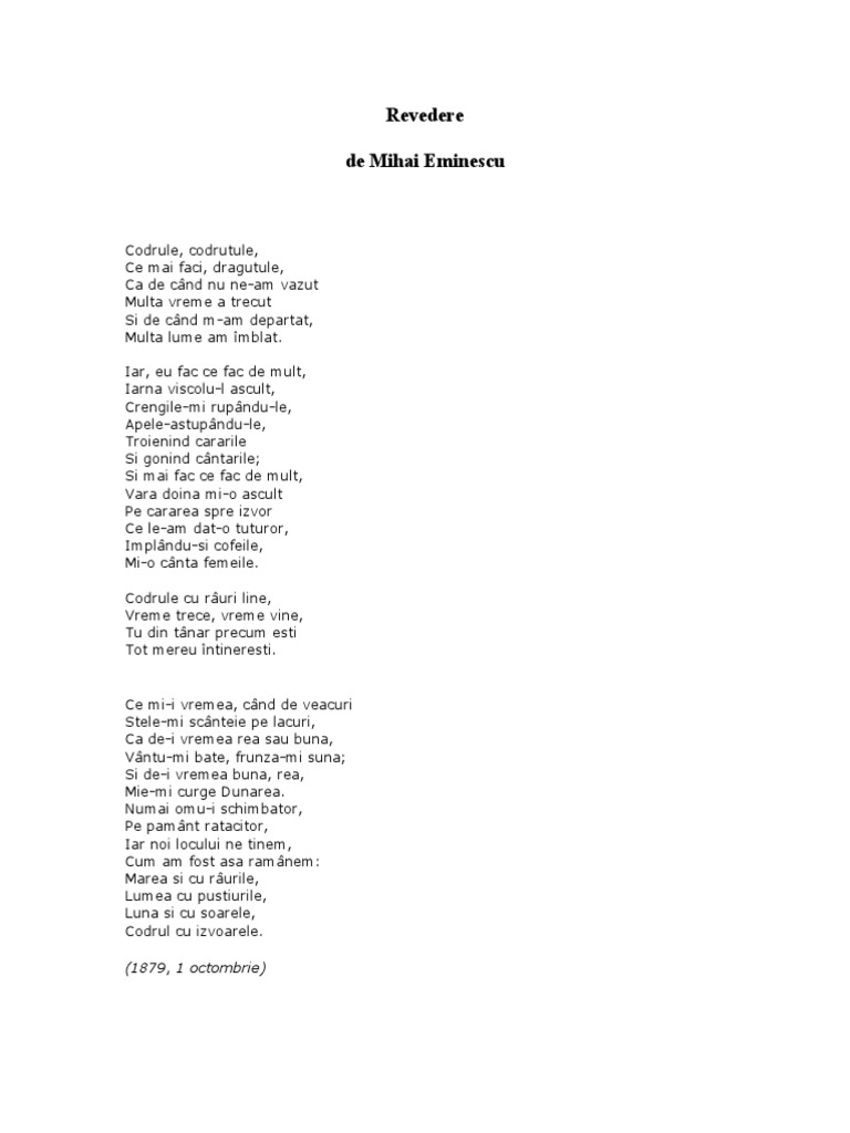 Revedere De Mihai Eminescu Anideșcoală Ro
