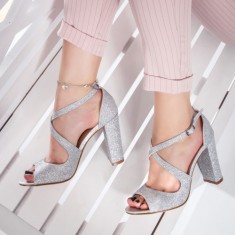 Sandale Cu Toc Argintii Ieftine Fashion Romania