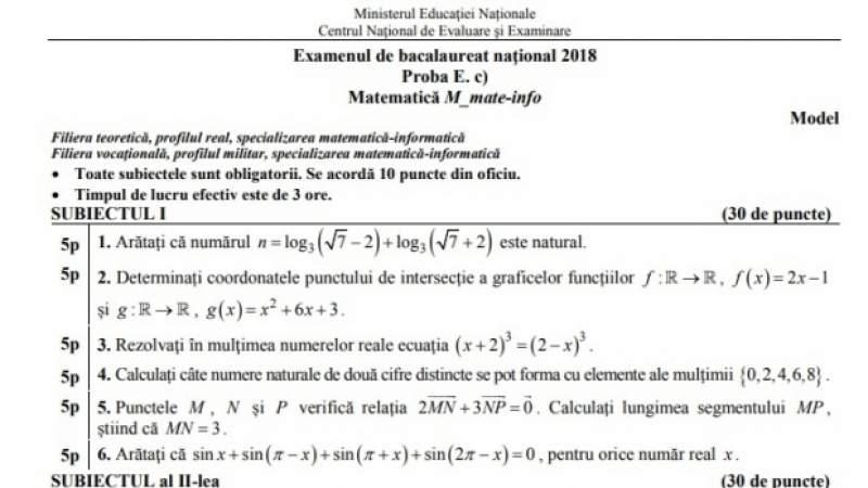 Susţinerea tuturor probelor scrise şi obținerea notei 5 cel puțin la fiecare dintre acestea. Există mai multe variante de subiecte la matematică la bacalaureat 2018 m1 m2 m3 în funcţie de specializare mate info ştiinţe ale naturii tehnologic. Cea de a doua sesiunea a examenului de bacalaureat a continuat vineri cu proba scrisă la matematică și istorie potrivit calendarului aprobat de ministerul educaţiei naţionale. Pentru a fi declarat promovat un candidat trebuie să îndeplinească următoarele condiţii cumulativ.