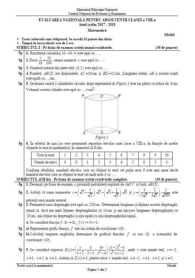 Evaluare Naţională 2019 Modele De Subiecte Pentru Absolvenţii De Clasa A Viii A Publicate De Ministerul Educaţiei Alba24