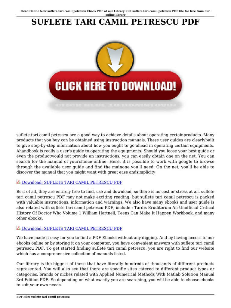 Suflete tari de camil petrescu pdf. Act venetian camil petrescu on free shipping on qualifying offers. Slideshare uses cookies to improve functionality and performance and to provide you with relevant advertising. Evidențiază tema și viziunea despre lume într un text dramatic ilustrează modalitățile de construcție a unui text dramatic evidențiează particularitățile de construcție a unui personaj evidențiează relația. Suflete tari camil petrescu pdf scrisa de camil petrescu este o carte.