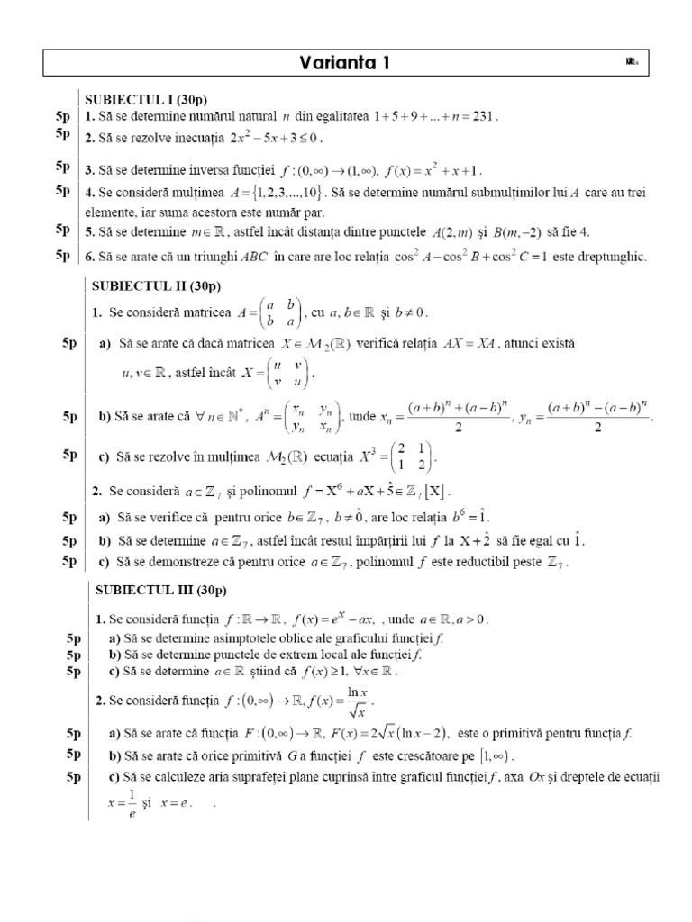 Variante Bac 2009 Matematica M1 Subiectul 1 Rezolvate Complet