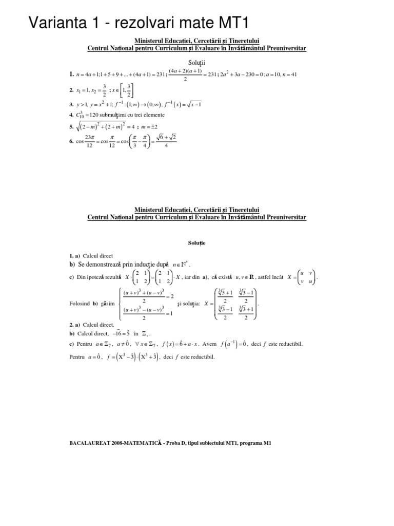 Rezolvari Complete Bac Matematica M2 Subiectul 1
